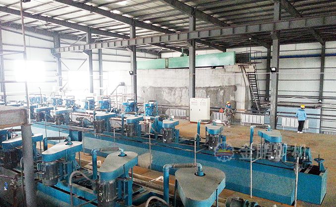 本工藝采用兩段一閉路破碎流程,合格產品進入粉礦倉緩存,礦石由擺式給礦機均勻的給到直筒節能格子型球磨機進行磨礦,格子球磨機和高堰式單螺旋分級組成一段閉路磨礦分級流程。球磨機的排礦先經過跳汰機富集大顆粒金,跳汰機底流通過兩段搖床選出30%品位的顆粒金,跳汰機的溢流進入分級機。分級溢流經過攪拌槽的調漿后進入浮選系統,通過做礦石的可選性實驗研究我們選擇一粗三精三掃的浮選流程,從而很大程度的回收脈石中的有價金元素。浮選金精礦通過濃密機濃縮由過濾機完成脫水作業,浮選尾礦由濃密機濃縮后進入壓濾機進行壓濾成濾餅做到尾礦干排。金礦重浮聯合流程也是金鵬集團用于山東黃金集團蓬萊大柳行選廠項目中的成功經驗。