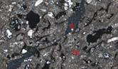 • 黃鐵礦殘留狀分布褐鐵礦中