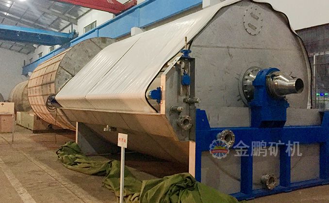 折帶式真空過濾機(jī)不采用鼓風(fēng)機(jī)卸料,而是讓濾布繞過卸料輥,通過變化曲率使濾餅自動落下,也可以利用刮板等機(jī)構(gòu)幫助卸料。這樣卸料不僅提高了過濾能力,而且不用鼓風(fēng),使濾餅不致因回水而增加水分。折帶式過濾機(jī)將濾布引到筒體以外,有足夠的時間采用有效的方法清洗濾布。一般用壓力水沖濾布的兩面,還可根據(jù)需要用刷子和打布器等裝置進(jìn)行更徹底的清洗,以保證濾布的透氣性。