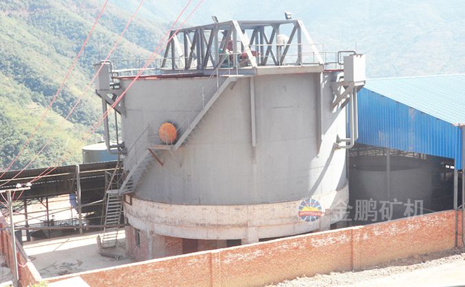礦漿由給礦筒給入,自由沉降于耙子區的礦漿受刮板的壓力進一步濃縮,由耙子逐漸刮向池子中心,由排礦口靠重力排入下一層池子中,清水經分配箱進入最下層對物料進行洗滌,最下層的溢流返回分配箱進入上層對物料進行洗滌,第一層的溢流經溢流堰排出,經兩次洗滌的物料經底部排出.